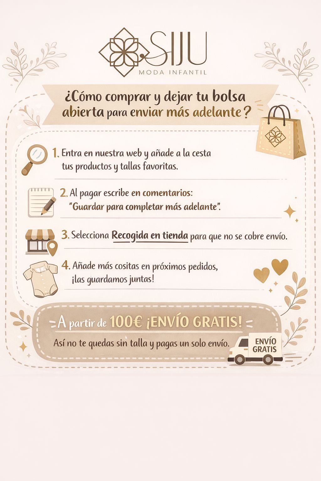 En Siju Moda Infantil queremos ponértelo fácil para que disfrutes de la compra con tranquilidad.