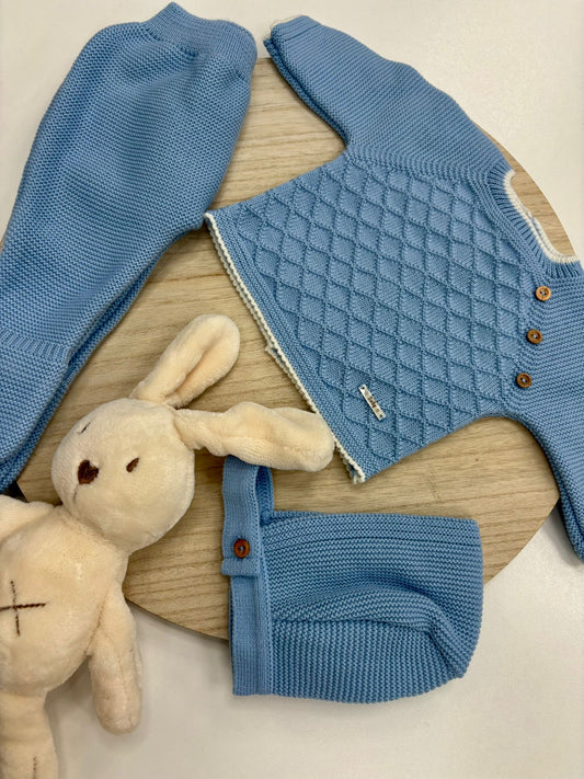 Conjunto 4 Piezas Bebé Recién Nacido Azul | Lazo Lateral y Cuello Pico