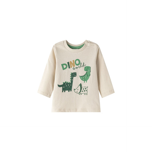 👶🦖 Camiseta bebé niño manga larga con dino | Blanco | 6-24M - BBI65008