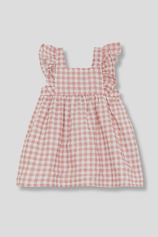 Vestido bebé cuadros rosa Pangasa Baby | Opción de braguita cubre pañal a juego | 0 a 24 meses