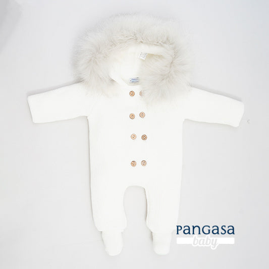Buzo con pie doble Marfil Pangasa Baby 🤍 0-6M | Capucha con pelito desmontable