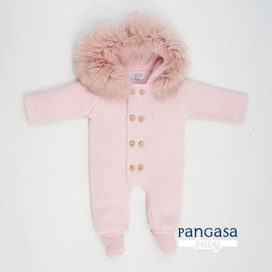 Buzo con pie doble Rosa Empolvado Pangasa Baby 🌸 0-6M | Capucha con pelito desmontable