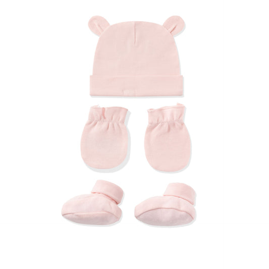 Set de tres piezas, gorro + manoplas + patucos, con dibujo de unicornio