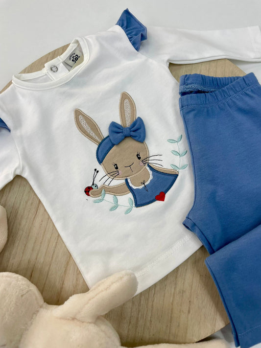 Conjunto bebé niña camiseta y leggins azul con conejito 🐰 | 6-48M