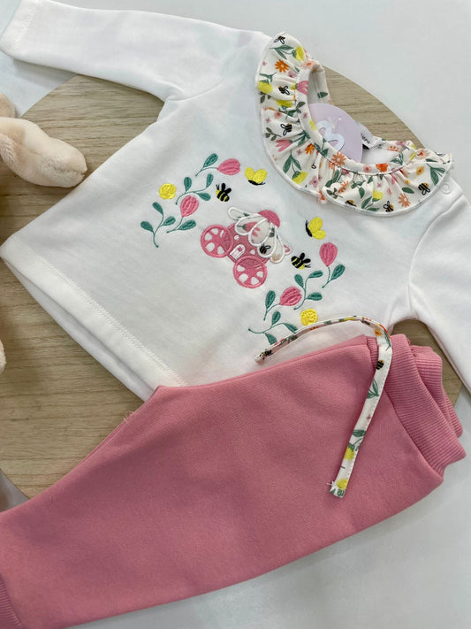 Chándal bebé niña blanca y rosa con carroza 👑 | 6-48M