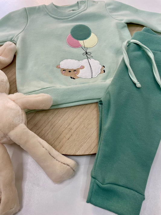 Chándal bebé tonos verdes con dibujo de ovejitas 🐑 interior calentito | 6-48M