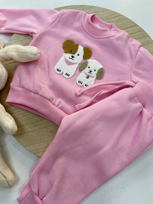 Chándal bebé niña rosa con dibujo de perritos y forro interior suave | 6-48M