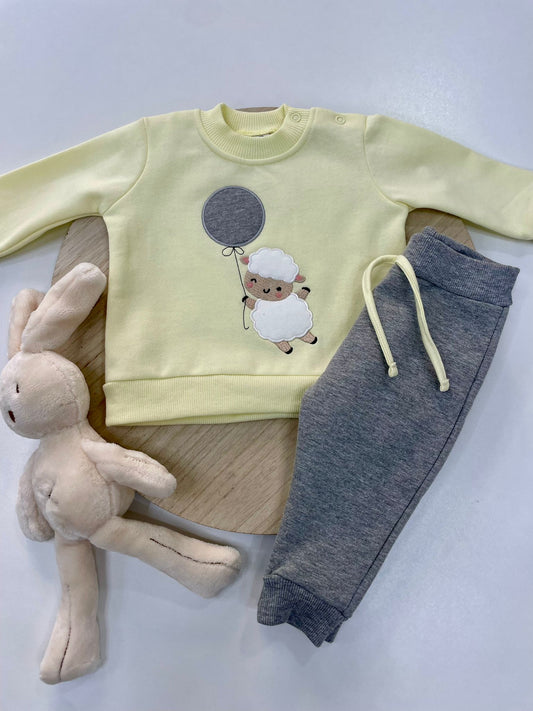 Chándal bebé en tonos amarillosy grises con ovejitas 🐑 cálido y suave | 6-48M