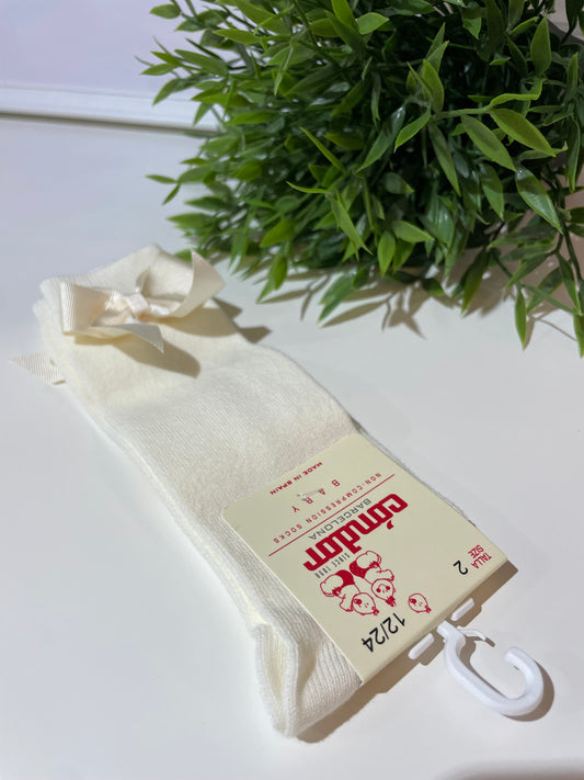 Calceta blanca lazo - Calcetines altos perlé calados con lazo grogrén BLANCO Cóndor
