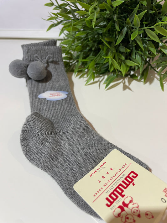 Calcetines bebé peúco gris claro con puño vuelto y rizo interior 0-12 meses 🧸✨