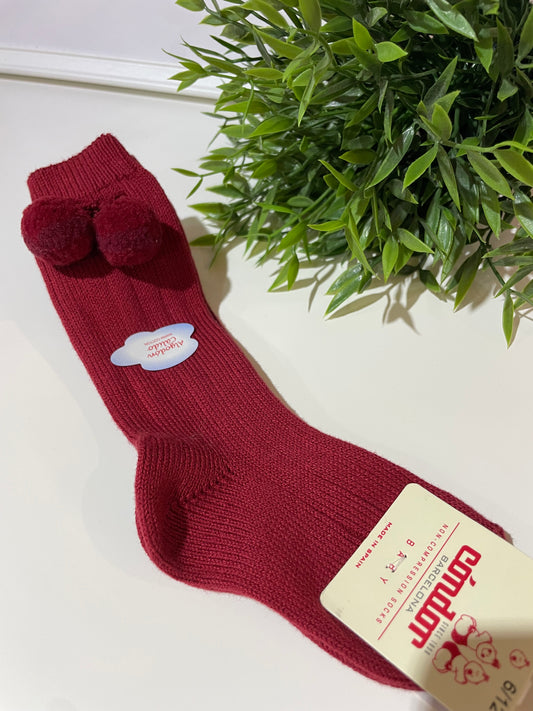 Calcetines cortos de perlé calados con lazo grogrén ROJO Cóndor