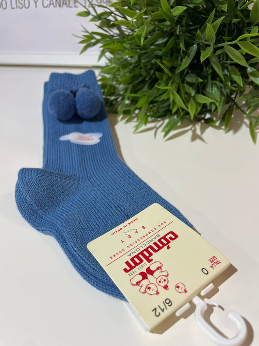 Calcetines de algodón en canalé con el puño vuelto azul bebe, para bebé. Disponibles en tallas de 0-3 meses a 6-12 meses. Cóndor