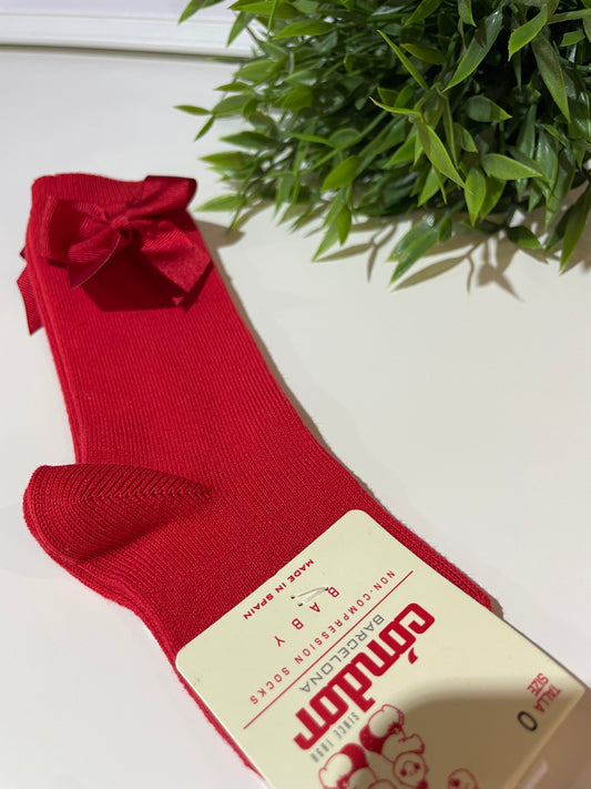 Calceta rojo lazo - Calcetines altos perlé calados con lazo grogrén ROJO Cóndor