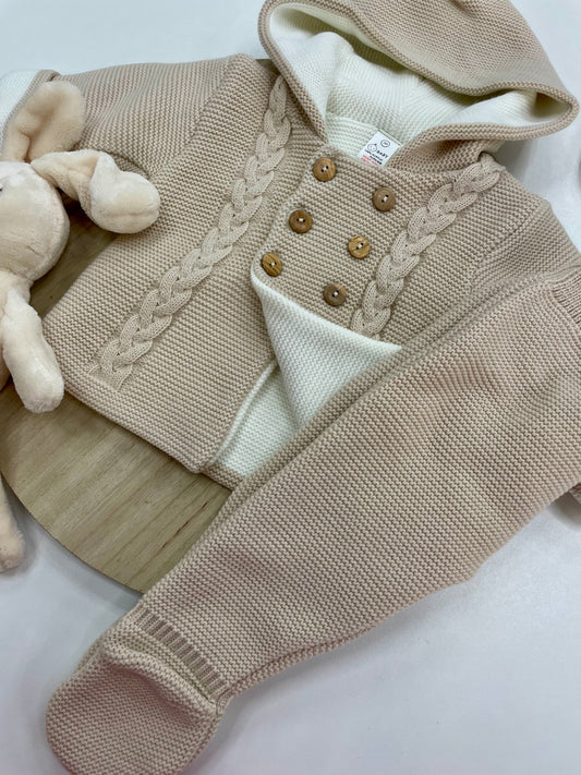Conjunto Chaqueta y Polaina de Lana para Bebé – Color Arena con Capucha (3-12 meses) 🤎🍼
