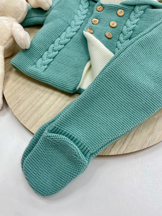 Conjunto Chaqueta y Polaina de Lana para Bebé – Color Mint con Capucha (3-12 meses) 💚🍼