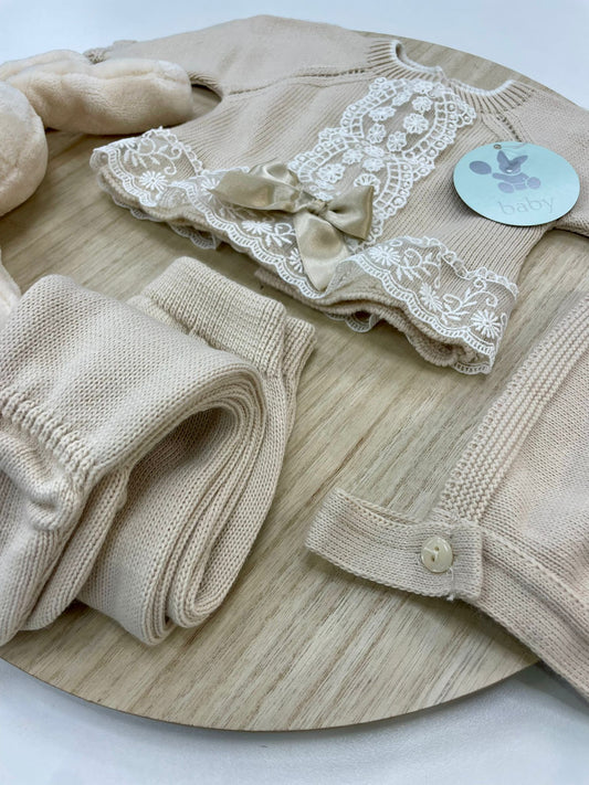 Conjunto Polaina Encanto Arena 3 Piezas Recién Nacido 0-6 Meses | Primera Puesta Bebé