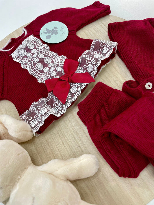 Conjunto Polaina Encanto Granate 3 Piezas Recién Nacido 0-6 Meses | Primera Puesta Bebé
