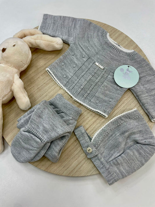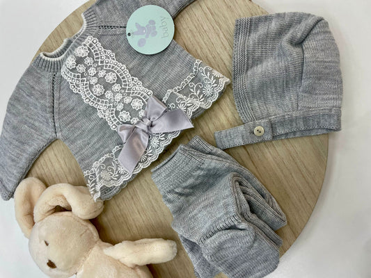 Conjunto Polaina Encanto Gris 3 Piezas Recién Nacido 0-6 Meses | Primera Puesta Bebé