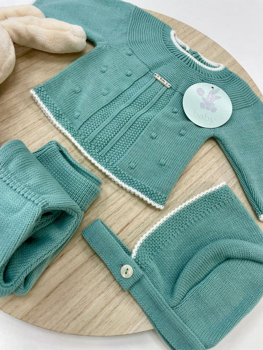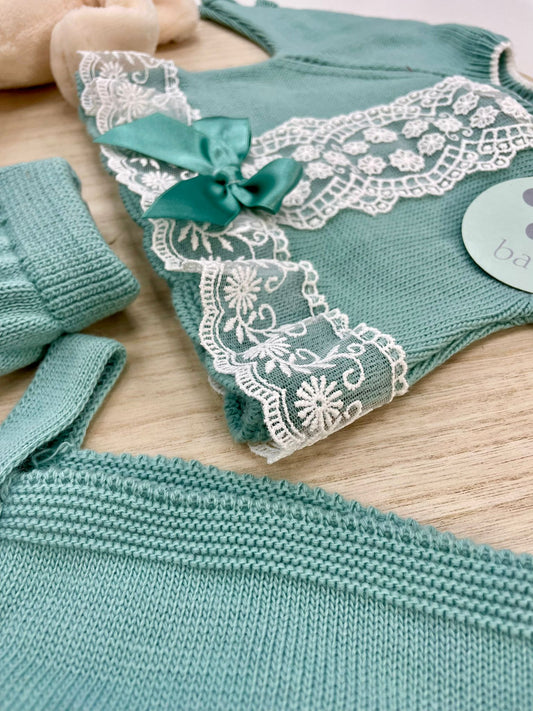 Conjunto Polaina Encanto Verde Mint 3 Piezas Recién Nacido 0-6 Meses | Primera Puesta Bebé