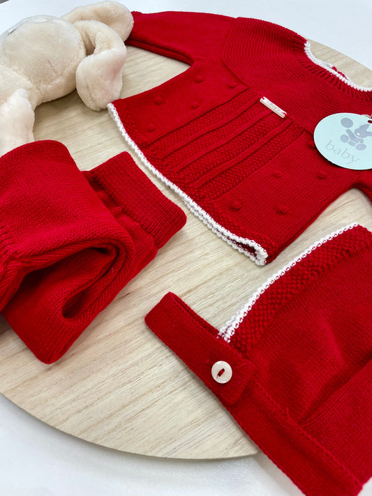 Conjunto Polaina Lucero Rojo 3 Piezas Recién Nacido 0-6 Meses | Primera Puesta Bebé