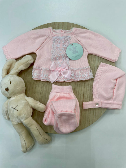 Conjunto Polaina Encanto Rosa Bebé 3 Piezas Recién Nacido 0-6 Meses | Primera Puesta