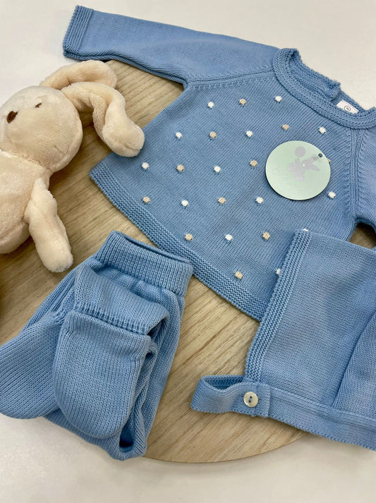 Conjunto bebé Pom Pom celeste con pompones color arena