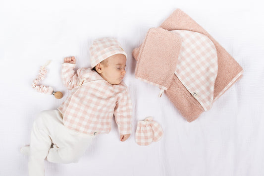 Capa de baño bebé 100x70 + manopla 🛁 95% algodón | Calamaro | Rosa, Mint y Celeste