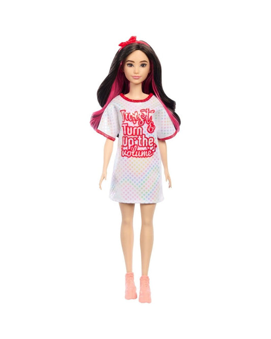 Barbie Fashionistas Muñeca n. 214, muñeca de Moda Coleccionable del 65 Aniversan rio con Pelo Negro Ondulado +3