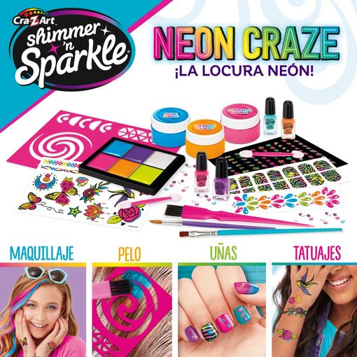 Shimmer N Sparkle - Set Belleza 4 En 1 Maquillaje, Tatuajes, Tintes Pelo Y Manicura, +8 Años