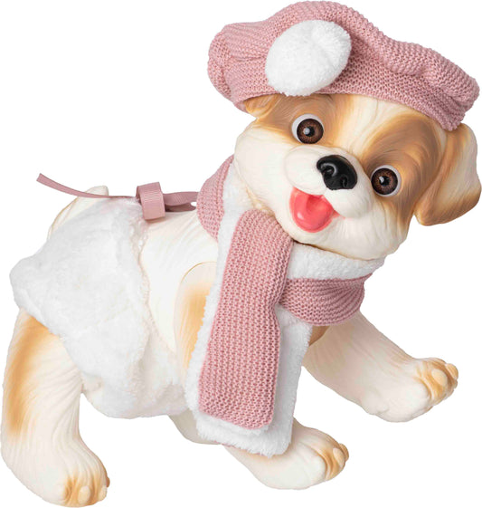 Perrito blanco con bufanda y gorrro rosa 23 cm cuerpo vinilo 2608 ROSA TOYS