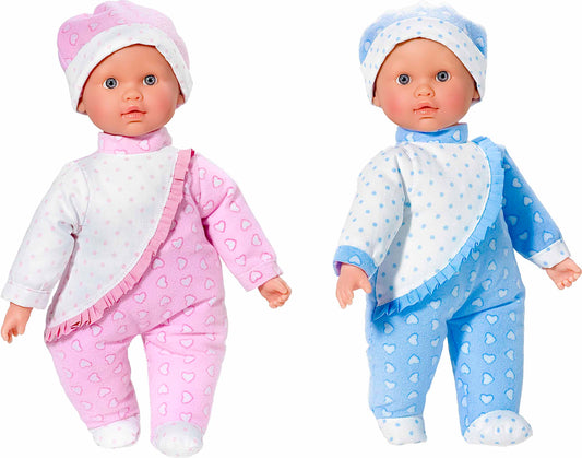 Muñeco Tiny Lloron con vestido de corazones y lunares rosa y azul