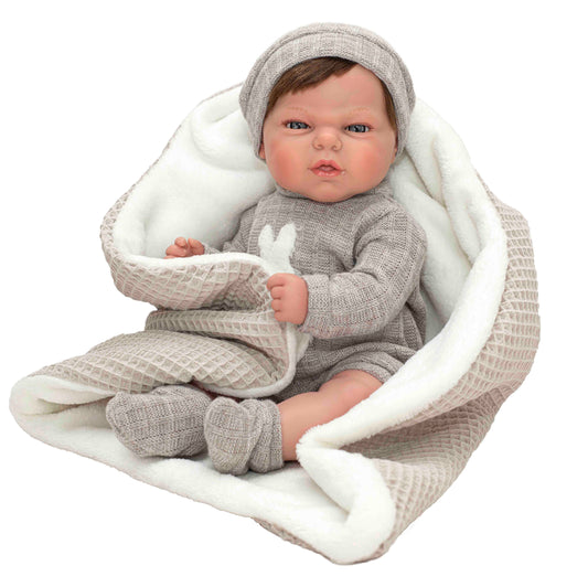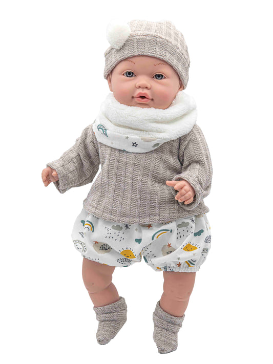 Muñeca Daniela Llorona Bufanda Gris 40cm