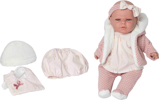 Mono reborn pelele beig y chaleco 35 cm vinilo 3341 ROSA TOYS