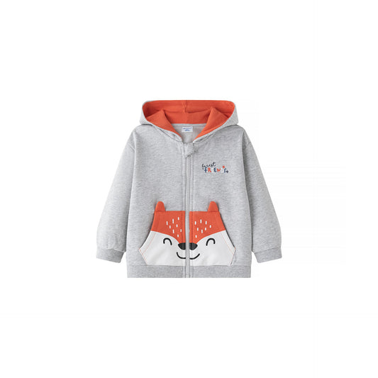 Chaqueta niño felpa gris claro con capucha y gráfico animal | 2-6 años