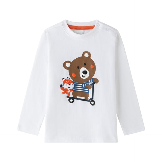 Camiseta niño manga larga blanca con gráfico de ositos | 2-6 años
