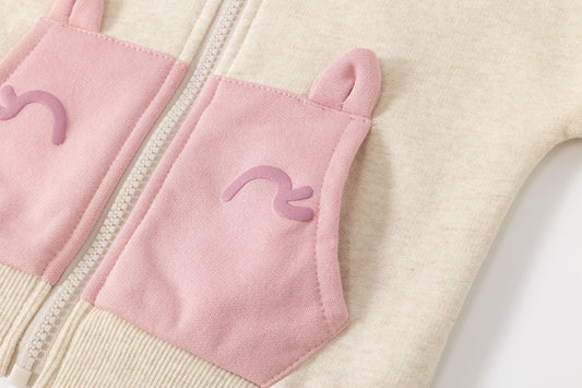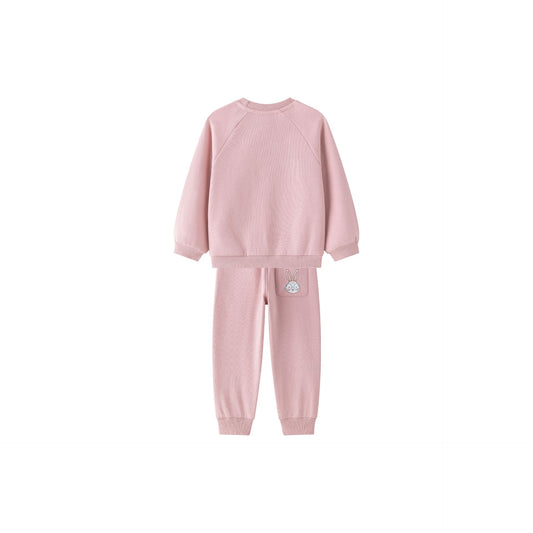 Conjunto niña sudadera y pantalón rosa con dibujo de conejito | 2-6 años
