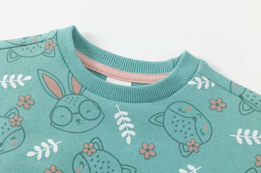Sudadera afelpada verde con estampado de conejitos niña 2-6 años 🐰✨