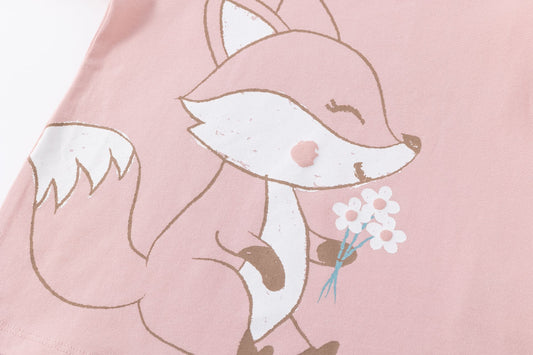 Camiseta Manga Larga Niña – Volantes en Hombros y Zorrito Feliz (2-6 años) 🦊✨