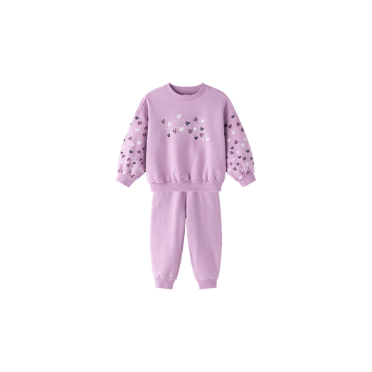 Conjunto niña sudadera y pantalón morado con apliqué de corazones | 2-6 años