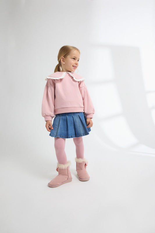 Sudadera Afelpada Niña – Cuello Peter Pan y Mangas Caídas (2-6 años) 🌸