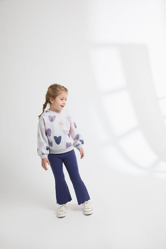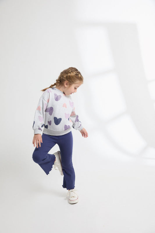 Sudadera niña gris afelpada con estampado de corazones | 2-6 años