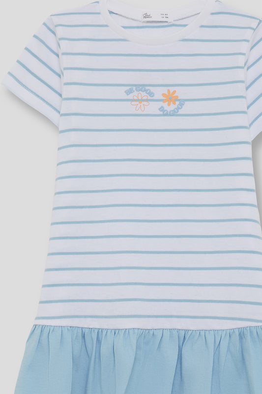 Vestido de algodón a rayas azul claro para niña Street Mockey 2-16 años