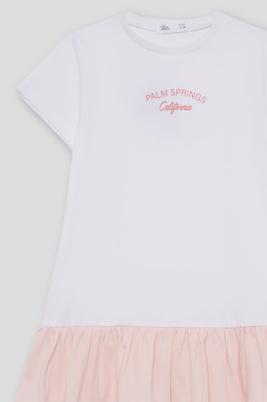 Vestido de algodón blanco y rosa para niña Street Mockey 2-16 años