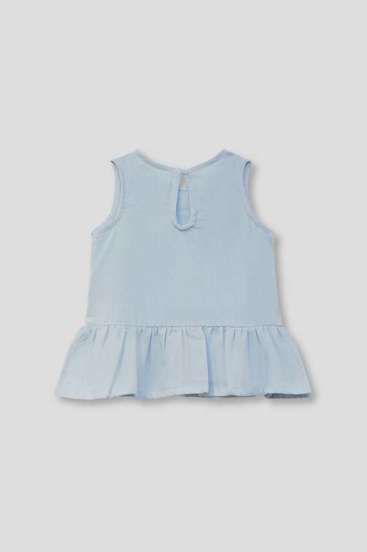 Blusa de algodón para niña Street Mockey azul claro con volante 2-16 años