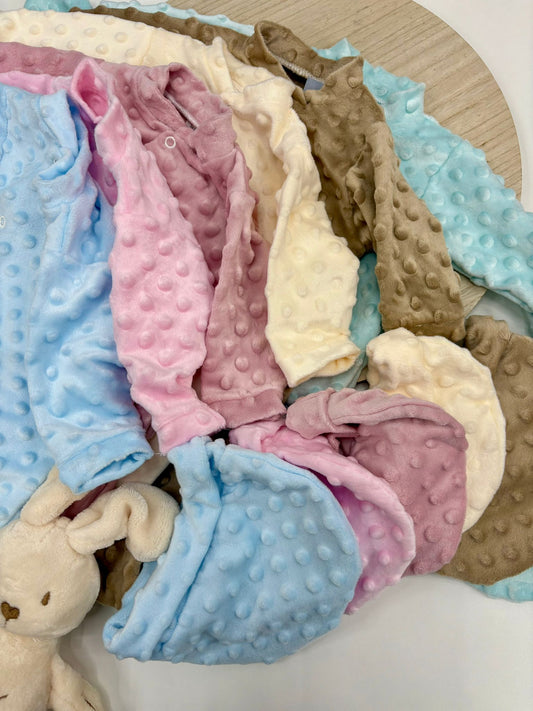 Pijama bebé minky con manoplas y gorro | Talla única 0-3 meses | Varios colores