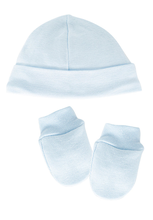 C Pack natal ( gorro+manopla) celeste 100% algodón
