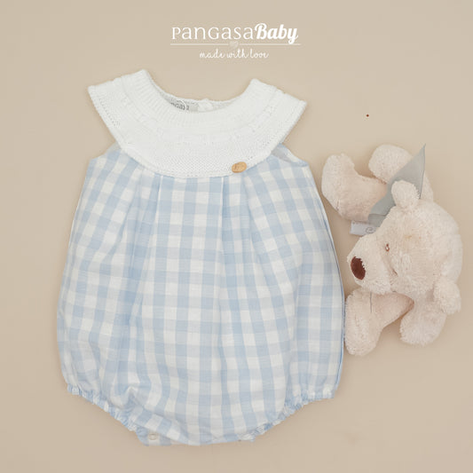 Pelele bebé todo tela cuadros azul Pangasa Baby | 100% algodón | 0 a 12 meses