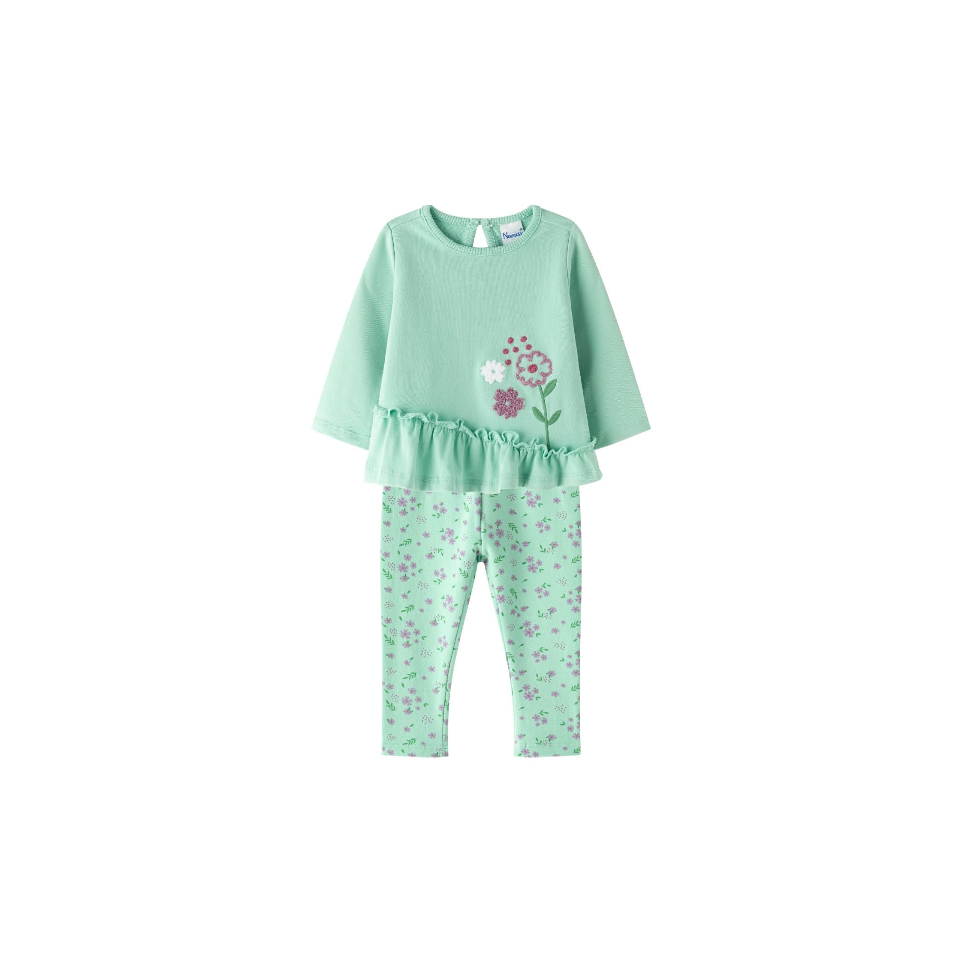 👶🌸 Conjunto bebé niña sudadera + jegging flores | Verde 6-24M - BGI65507