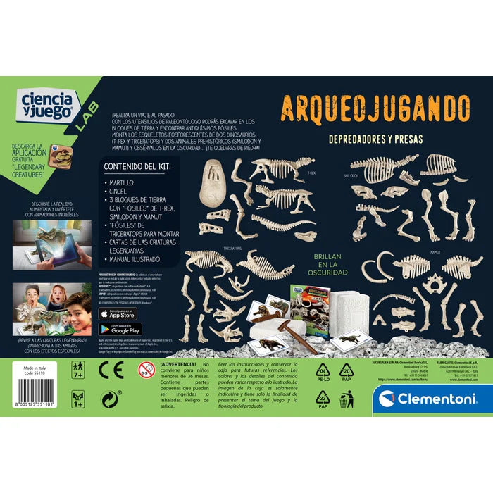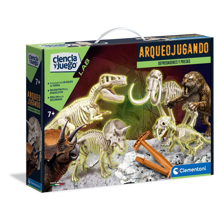 Arqueojugando Depredadores y Presas – Excavación y Esqueletos Fosforescentes 7+ | Clementoni