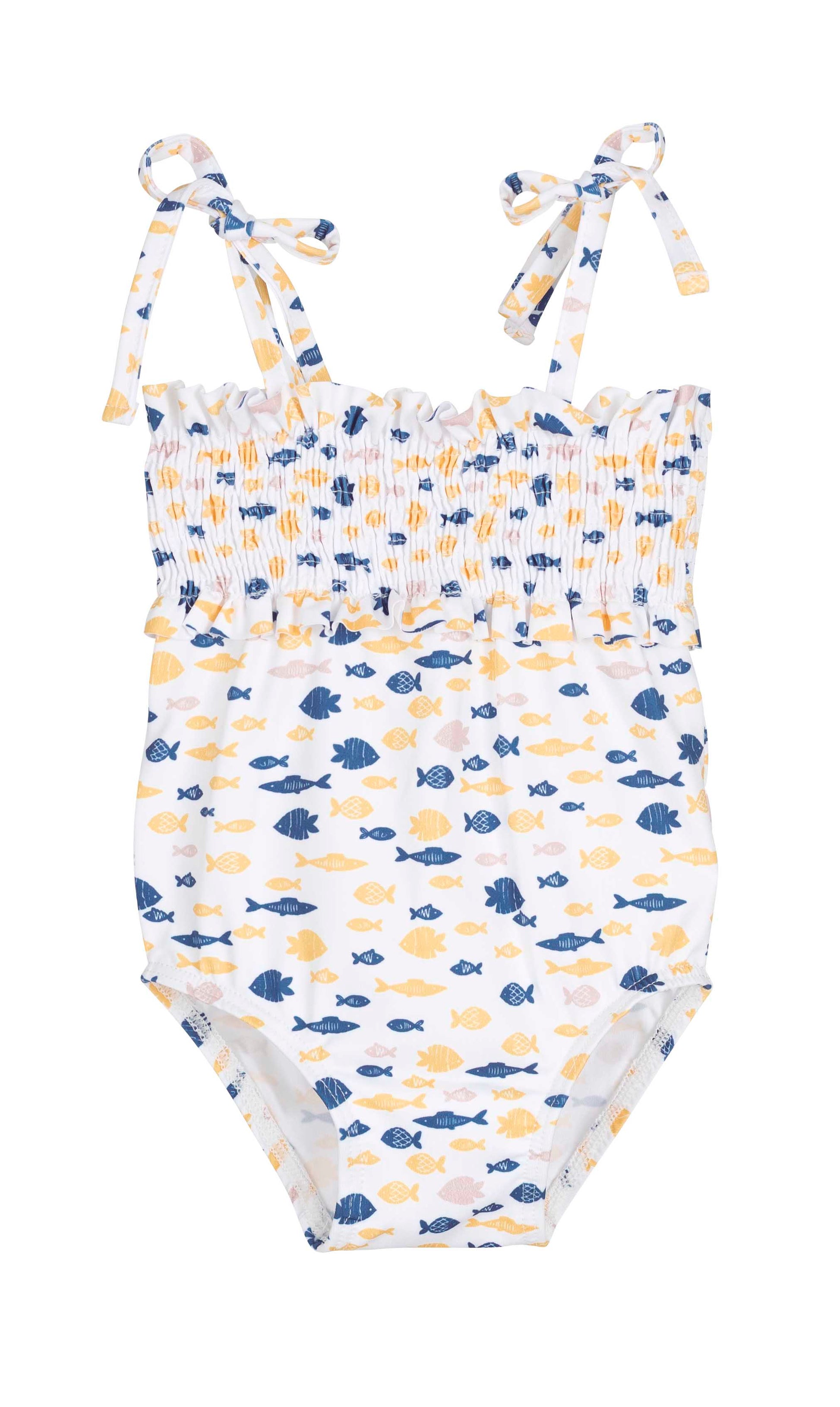 Un bañador ideal para combinar con bikinis, vestidos y complementos de la colección Peces en Siju Moda Infantil.